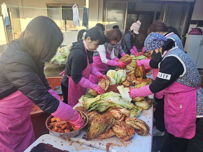 이날 합천노인통합지원센터 직원과 봉사자등 20여명은 김장김치 1,100kg를 담가 4개면(삼가, 가회, 쌍백, 대병) 저소득 및 독거어르신 341가정에 직접 배달했다.