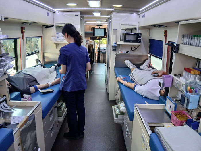 | ▲ 생명나눔 사랑의 헌혈 행사로 직원 및 주민들이 헌혈하는 모습. (사진=성동구청 제공) |