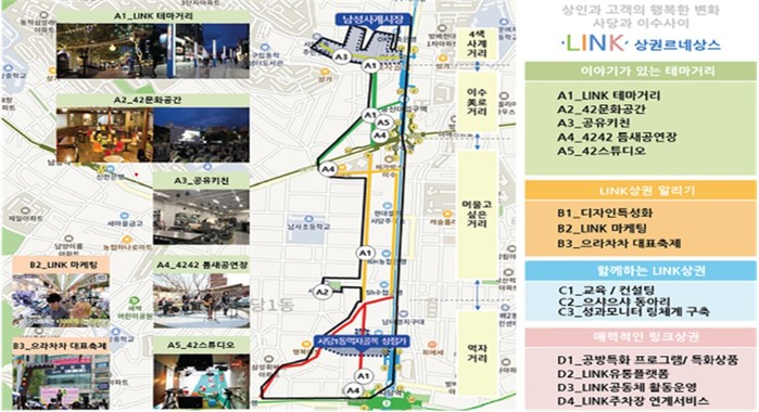 동작 LINK 상권르네상스 사업은 ‘사당역’과 ‘이수역’을 연결하는 구간을 ‘상권활성화 구역’으로 지정해 골목상권에 활력을 불어넣는 프로젝트다.