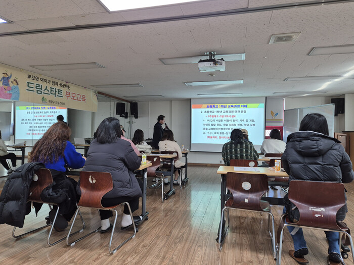 22일 실시된 ‘새내기 학부모 초등교실’에서는 인천북부교육지원청과 연계해 현직 초등학교 교사를 강사로 초빙했으며, 초등 1학년 교육과정과 학교생활 등에 대해 상세히 안내하는 시간이 마련됐다. 또한, 새로운 환경에 아동이 잘 적응할 수 있도록 자녀와 소통하는 법을 주제로 한 소통의 시간도 이어졌다.