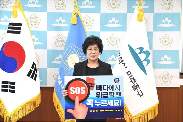 [인천=김형만 기자] 미추홀구의회는 20일 해양경찰청 주관으로 실시하는 ‘SOS 구조 버튼 누르기’ 릴레이 챌린지에 전경애 의장이 동참했다고 밝혔다.