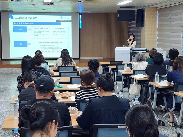 이번 설명회는 합천교육지원청의 주관으로 사전 신청을 통해 신청한 서부 경남 합천권역(합천·거창·산청·함양) 4개 지역의 200여 명 초·중·고 학부모님이 참석하였으며, 2025년부터 전면 시행되는 고교학점제 정책에 대한 교육공동체의 이해도를 높이고 변화된 대학 입시 제도의 정확한 정보 제공과 수험생들의 체계적인 진로·학업 설계를 돕기 위해 마련됐다.