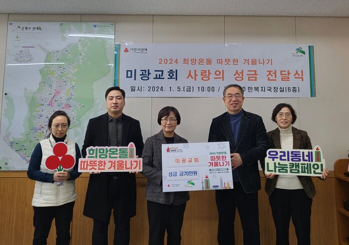 [시민일보 = 이대우 기자] 서울 은평구(구청장 김미경)는 최근 미광교회와 따뜻한 겨울나기 사랑의 이웃돕기 성금 전달식을 가졌다.