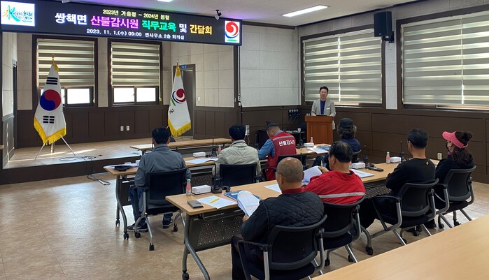 이날 교육은 11월부터 내년 5월까지 쌍책면 산불예방을 위해 활동하는 산불감시원의 전문성과 산불현장 대응능력을 높이기 위해 진행됐다. 산불 진화장비 사용법, 상황별 대처요령, 불법소각 행위 단속방법 등 산불감시원의 실질적 역량 강화에 중점을 뒀다.