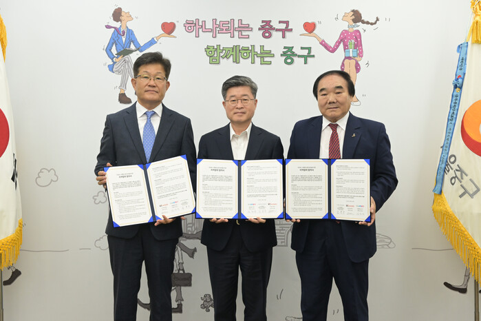 [시민일보 = 여영준 기자] 중구(구청장 김길성)가 최근 (사)서울중구 전통시장 상권발전소(이하 상권발전소), KT에스테이트와 ‘대·중소 유통 지역협력 협약’을 체결했다.