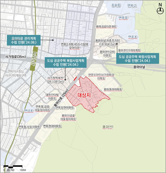 지난 2022년 8월, 면목9구역은 국토교통부와 서울시 공모사업을 통해 공공재개발 사업 후보지로 선정됐다. 구는 사업 기간을 단축하기 위해 서울시와 LH가 초기 단계부터 각종 계획 수립과 절차를 지원하는 ‘사전기획 방식’으로 사업을 준비하고 있다.