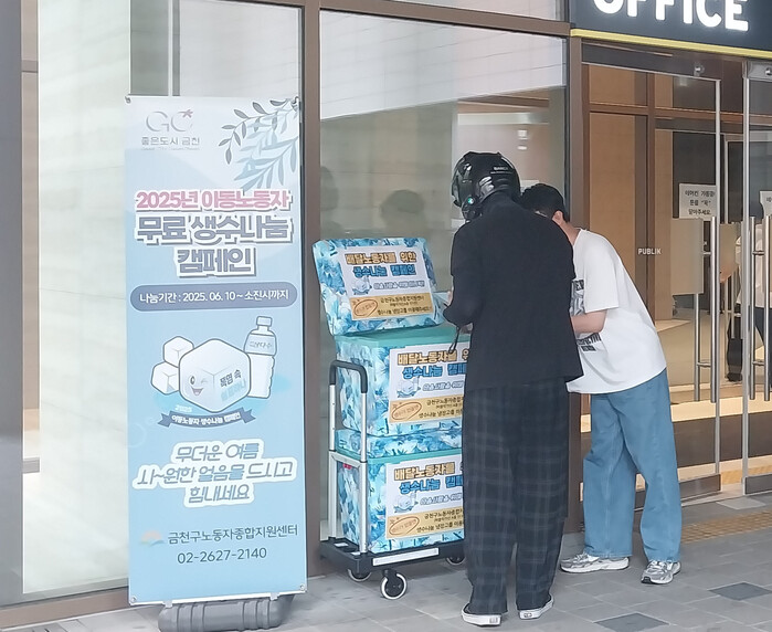 [시민일보 = 여영준 기자] 금천구(구청장 유성훈)는 지난 6월부터 시작한 ‘2025년 이동노동자 생수나눔 캠페인’을 폭염 장기화에 따라 이달 말까지 연장 운영한다고 밝혔다.