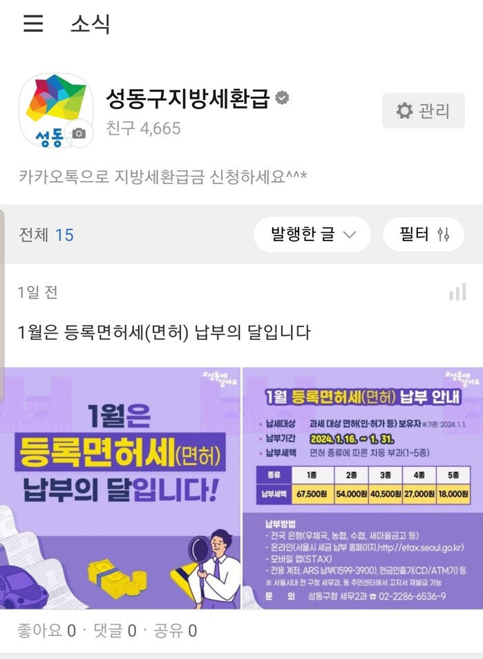 이에 구는 2021년부터 카카오톡 채널(채널명 '성동구지방세환급')을 통한 환급금 조회 및 신청 서비스를 제공하고 있다.
