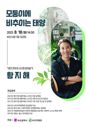 [부산=최성일 기자] 부산시(시장 박형준)는 세계적인 정원 전문가 황지해 작가를 초청해 '한국 정원의 정체성과 세계적 확장 가능성'을 조망하는 특별 강연을 오는 8월 18일 오후 2시 시청 1층 대강당에서 개최한다고 밝혔다.