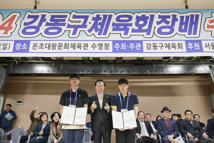 [시민일보 = 이대우 기자] 강동구의회 조동탁 의장(천호2동)이 지난 1일 온조대왕체육관에서 열린 강동구체육회장배 수영대회에 참석해 수영 활성화에 기여한 이들에게 감사장을 수여하고 관계자들을 격려했다.