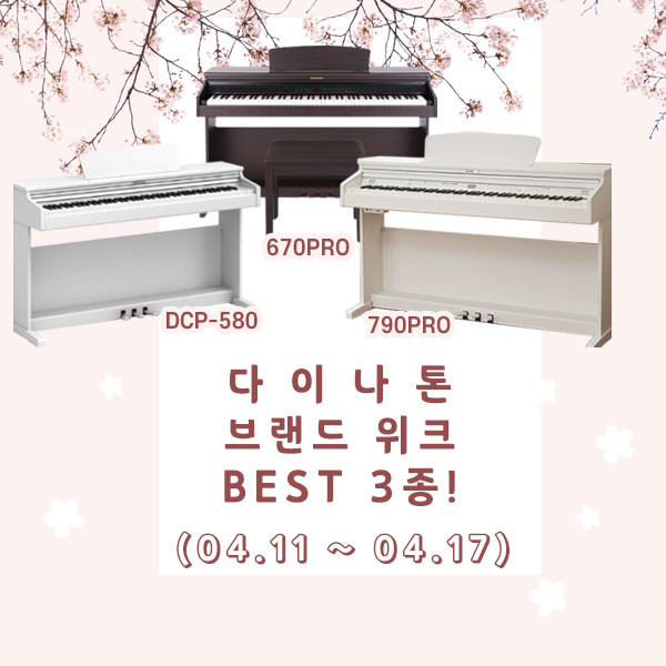 이번 브랜드위크 행사 모델에는 다이나톤의 플래그십 디지털피아노 790PRO와 국민 전자피아노라고 불리는 DCP-580을 포함하여 3종 모델로 진행된다.