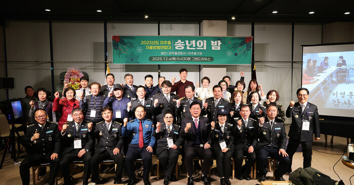 [인천=문찬식 기자] 인천 미추홀구(구청장 이영훈) 자율방범연합대(대장 전금출, 이하 연합대)는 지난 4일 그랜드하우스 웨딩홀에서 ‘2025년 송년의 밤’을 성황리에 개최했다.