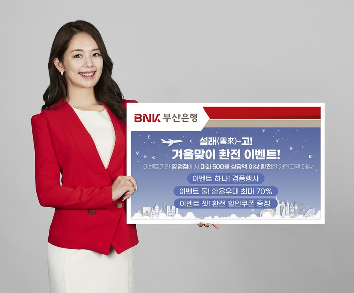 [시민일보 = 여영준 기자] BNK부산은행은 19일 외화 환전고객을 대상으로 오는 2023년 2월28일까지 겨울맞이 '설래(雪來)-고!' 환전 이벤트를 실시한다고 밝혔다.