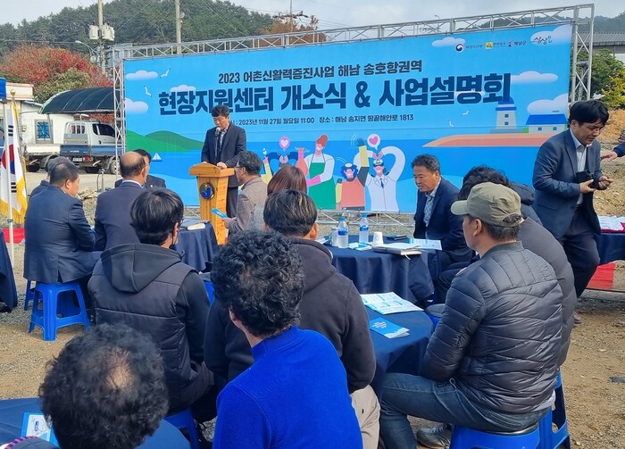 | ▲ 지난 11월 27일 송지면 송호마을 송호항 어촌신활력증진사업 현장지원센터 개소식 / 해남군 제공 |