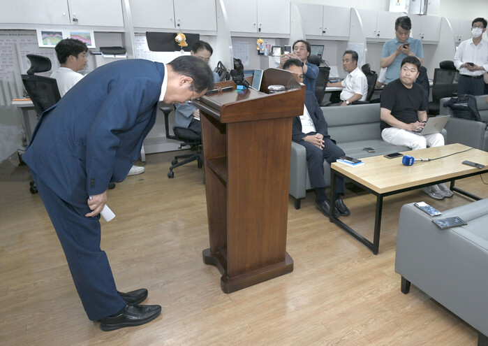 이후 19일 대구시청 동인청사에서 발표한 입장문을 통해 "수해로 상처 입은 국민과 당원 동지 여러분께 심려를 끼쳐 사과드린다"며 고개를 숙였다.
