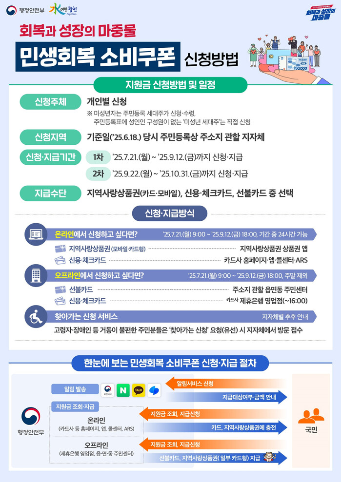 이번에 지급되는 소비쿠폰은 전 국민을 대상으로 2025년 6월 18일 주민등록지 기준으로 소득별 차등 지급방식이 적용된다.