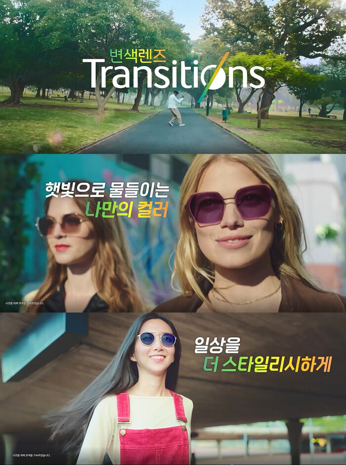 이번 광고는 변색렌즈 트랜지션스의 트랜디하고 현대적인 이미지를 강조했으며, 전국의 CGV 특별관에서 최신 인기영화인 ‘밀수’, ‘더 문’, ‘미션임파서블7’ 등의 상영 전 광고와 CGV 로비의 파노라마 광고판에서 만나볼 수 있다.