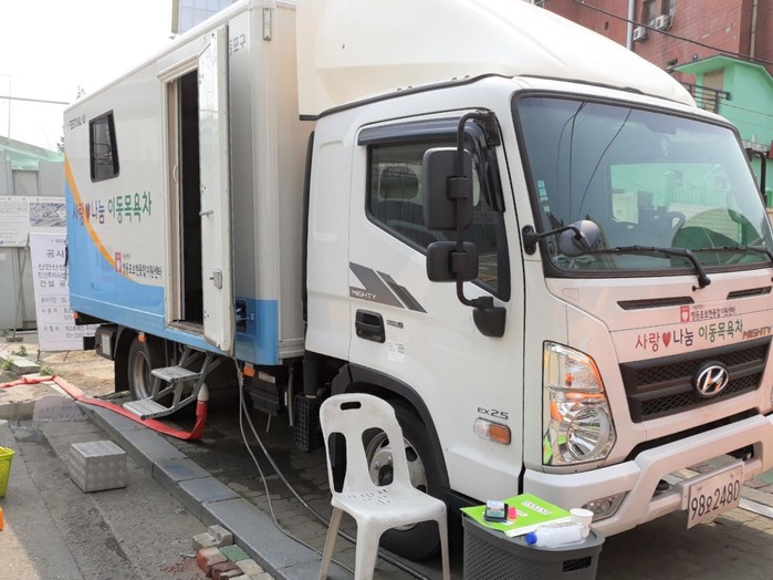 이동 목욕서비스는 내부에 샤워기가 설치돼 있는 특수 차량을 노숙인의 왕래가 잦은 복지시설과 쪽방촌 등에 운행해 거리노숙인의 청결한 개인위생 관리를 돕고, 사회로 복귀할 수 있는 자활 의지를 북돋우기 위해 제공되고 있다.