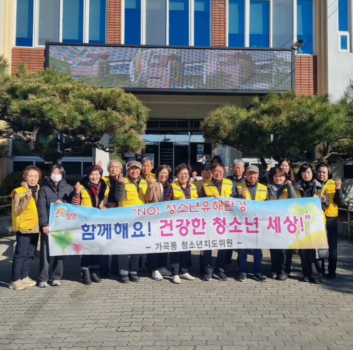 이날 캠페인에는 청소년 지도위원과 가곡동 직원 등 15여 명이 참여했으며, 학교 주변과 밀양역 인근 편의점과 음식점을 중심으로 청소년 대상 술·담배 판매 여부, 출입·고용 제한 준수 여부 등을 집중적으로 점검했다. 또한 업주들에게 청소년 유해환경 예방을 위한 협조를 요청하며, 지역사회 전반의 관심을 독려했다.