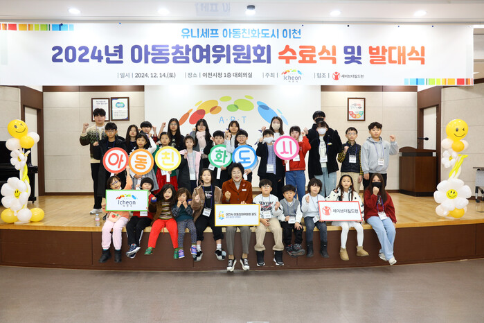 [시민일보 = 민장홍 기자] 경기 이천시가 최근 시청 1층 대회의실에서 아동참여위원, 보호자, 세이브더칠드런 영세이버 등 60여명이 참석한 가운데 2024년 아동참여위원회 수료식 및 발대식을 개최했다.