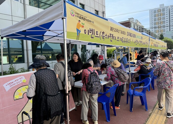 복지관은 지역주민과 함께할 수 있는 다양한 이벤트와 체험 부스를 준비해 온오프라인 행복 나눔 미니 바자회, 개관 23주년 축하이벤트, 나만의 천연수세미 만들기 천연부스, 함께 으쓱하는 포토 존, 무료 나눔, 주사위 굴려굴려 퀴즈게임, 우수자원봉사자 및 후원자 시상을 진행했다.