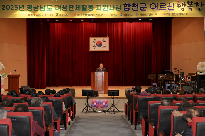 김윤철 합천군수는 축사에서 “어르신들의 건강한 삶을 위한 지원과 건강증진 프로그램 운영을 위해 항상 노력하고 있다”며 “오늘 하루는 마음 한켠에 자리잡고 있는 근심 걱정 다 내려놓으시고 마음껏 웃고 즐기시며 마음의 건강을 돌보는 시간을 가지시기를 바란다”고 말했다.