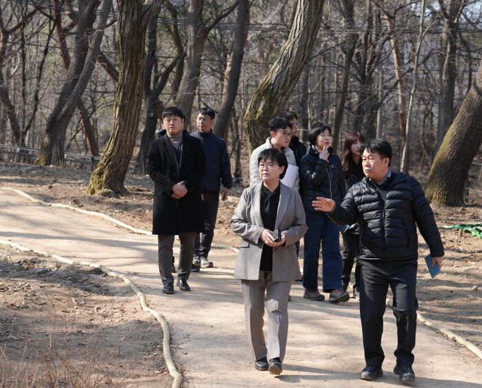 | ▲ 최근 이순희 구청장이 북한산 체험숲속 쉼터 개장 전 현장을 찾아 산책로를 점검하고 있다. (사진=강북구청 제공) |