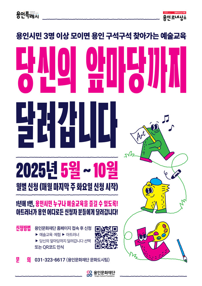 [용인=오왕석 기자] 용인문화재단(이사장 이상일)은 2025 찾아가는 예술교육 ‘당신의 앞마당까지 달려갑니다’의 참여자를 모집한다.