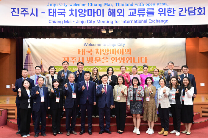 치앙마이 민선 의회 의장, 유네스코 문화유산 관련 부서 직원 등으로 구성된 치앙마이 국제교류단은 첫 일정으로 2일 오후 6시 30분 진주시청 2층 시민홀에서 조규일 진주시장과 상호 문화, 예술, 축제 상생발전을 위한 간담회를 가졌다.