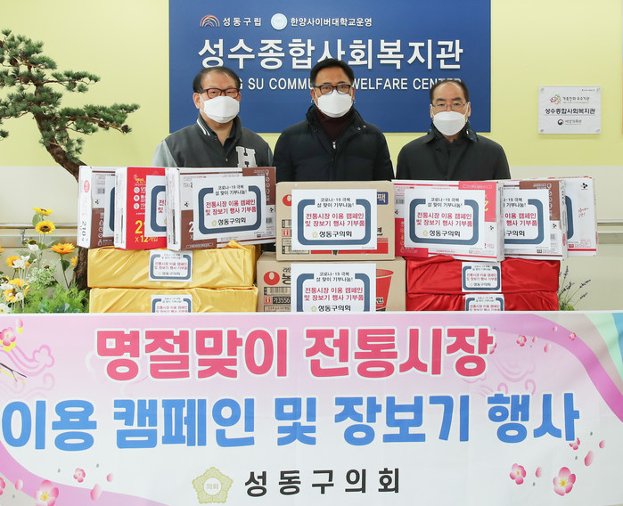[시민일보 = 홍덕표 기자] 서울 성동구의회(의장 이성수)는 최근 나흘간 설 명절 맞이 지역 전통시장 이용 캠페인과 합동 장보기 행사를 개최했다고 밝혔다.
