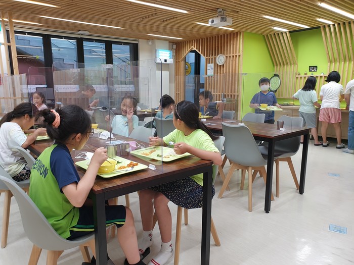 | ▲ 노원아이휴센터 아동식당에서 식사를 하고 있는 아이들의 모습. (사진=노원구청 제공) |