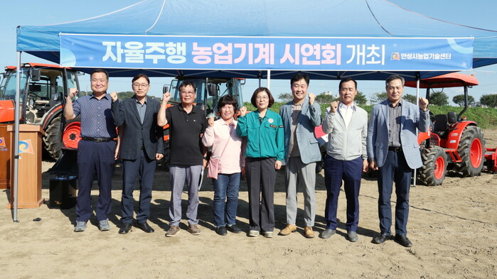 이번 시연회는 안성시농업기술센터에서 새로 구비한 자율주행 트랙터 작업시연과 자율주행 키트, 자율주행 무인방제기 전시 등이 있었다.