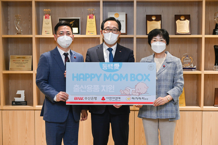 부산은행에 따르면 2017년부터 매년 진행하고 있는 ‘해피맘박스’ 지원 사업은 부산지역 내 저소득 출산가정의 경제적 부담을 덜어주고, 저출산 문제 해결을 위해 실시하는 사회공헌사업이다.