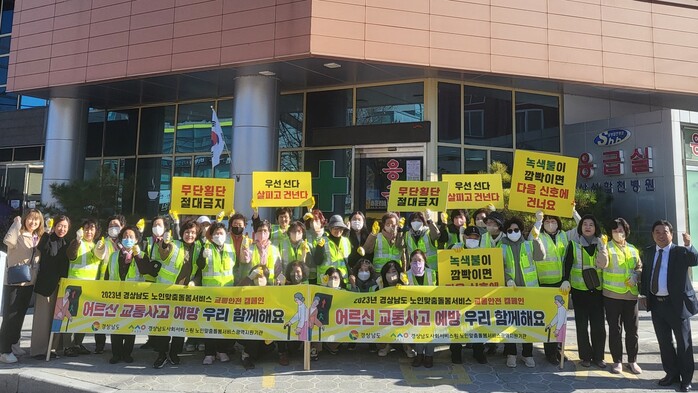 이번 교통안전 캠페인은 경남노인맞춤돌봄 광역지원기관이 도내 55개 노인맞춤돌봄서비스 수행기관과 챌린지로 함께 실시됐으며, 최근 노인교통사고 증가로 어르신들에게 교통사고의 위험성을 알리고 경각심을 갖는 기회를 마련하고자 진행됐다.