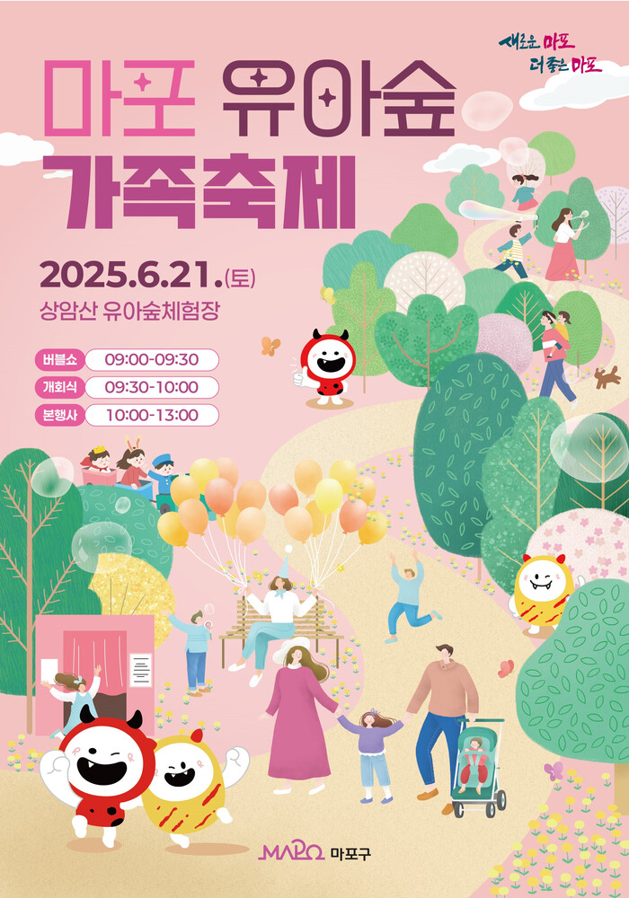 [시민일보 = 문민호 기자] 마포구(구청장 박강수)는 오는 21일 오전 9시~오후 1시까지 상암산 유아숲체험원(상암동 1761)에서 ‘2025 마포 유아숲 가족축제’를 개최한다.