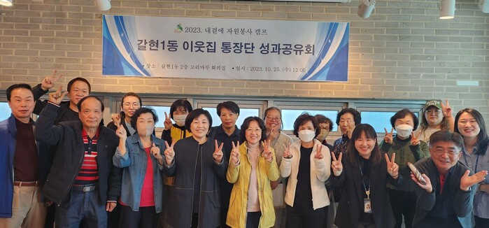 [시민일보 = 이대우 기자] 서울 은평구(구청장 김미경) 갈현1동 자원봉사캠프와 통장협의회는 최근 ‘갈현1동 이웃집 통장단 성과공유회’를 실시했다고 밝혔다.