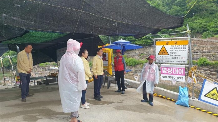 27일 산청군에 따르면 장마에 대비해 인명피해가 우려되는 계곡, 하천, 야영장 등에 대한 긴급 현장 점검을 실시했다.