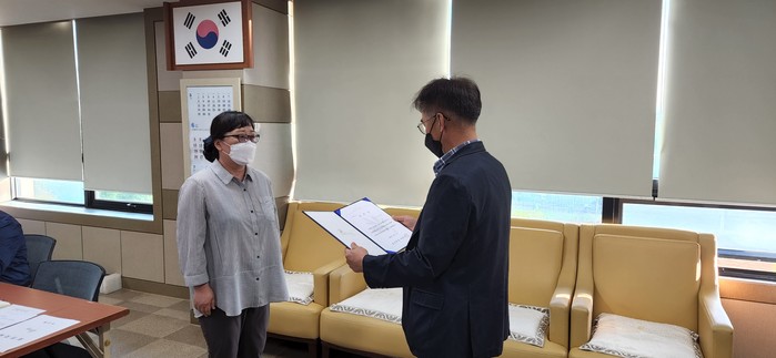 경기 동두천시 보산동 주민자치위원회는 지난 7일 주민자치 월례회의를 개최하고 보산동 발전을 위해 활동할 이은경 위원을 신규 위촉했다. 사진은 이날 이 위원에게 위촉장을 전달하고 있는 모습. (사진제공=동두천시청)