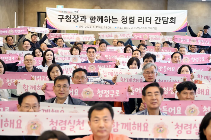 간담회에는 구로구 청렴 리더로서 문헌일 구로구청장을 비롯한 간부 공무원들이 참석해 청렴 실천 결의문 낭독, 간부 청렴 개선을 위한 그룹 토의, 청렴 슬로건 퍼포먼스 등을 하며 청렴 실천을 위한 의지를 다졌다.