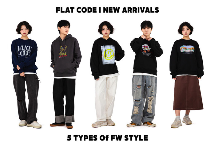 이번 신상품은 스마일 코드, 네온 베어, 스트릿 데이지 후드티 3종과 더 크리에이션, 슈퍼 시그니처 맨투맨 티셔츠 2종으로 구성되어 있다. 플랫코드만의 톡톡 튀는 디자인과 유니크한 느낌이 돋보이며, 스트릿패션의 완성도를 한층 높였다.