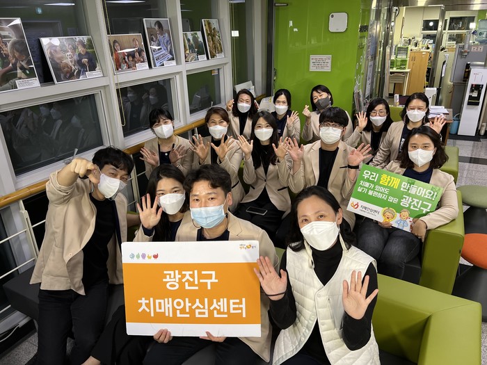| ▲ 광진구 치매안심센터 직원들이 기념촬영을 하고 있다. (사진제공=광진구청) |