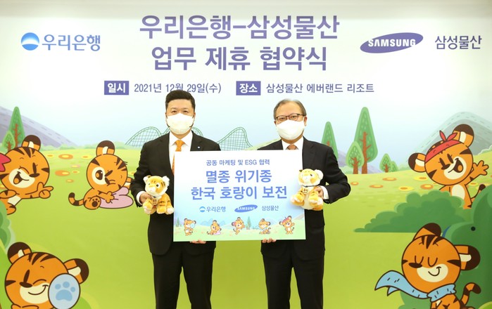 [시민일보 = 홍덕표 기자] 우리금융지주 자회사 우리은행은 2022년 임인년(壬寅年) 호랑이 해를 맞아 삼성물산 리조트부문 에버랜드와 '기업의 사회적 책임 실천 및 ESG 협력 강화를 위한 업무협약'을 체결했다고 29일 밝혔다.