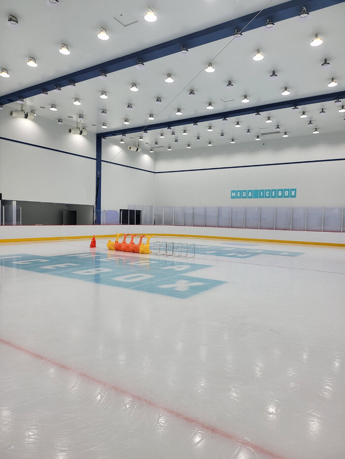 한편, 메가아이스박스는 GTX 킨텍스역 인근 레이킨스몰 3층 메가박스 영화관 복합문화시설 내에 위치하고 있다. 비나 눈이 오는 날에도 쾌적하게 즐길 수 있는 도심형 프리미엄 아이스링크로, 특히 일산·파주·김포 등 경기 서북부 지역 고객들에게 접근성이 우수해 주말 가족 나들이와 방학 체험 활동 장소로 인기를 얻고 있다.