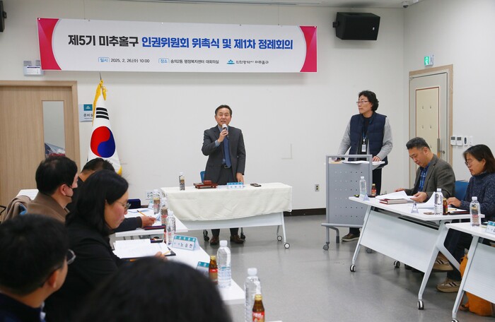 [인천=문찬식 기자] 인천 미추홀구(구청장 이영훈)는 26일 숭의2동 행정복지센터 대회의실에서 ‘제5기 미추홀구 인권위원회 위촉식 및 1차 정례회의’를 개최했다.