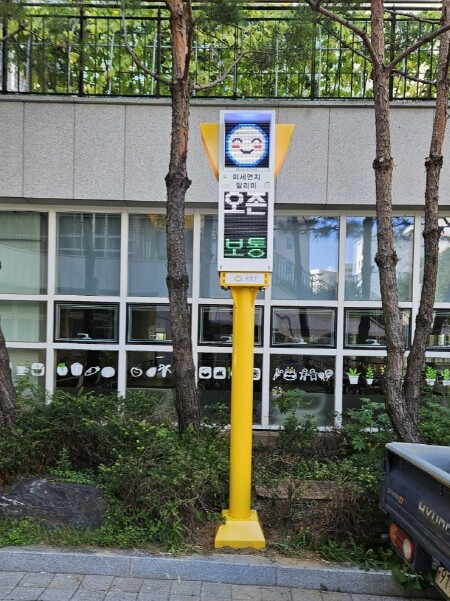 | ▲ 금나래초등학교에 설치된 미세먼지 알리미. (사진=금천구청 제공) |