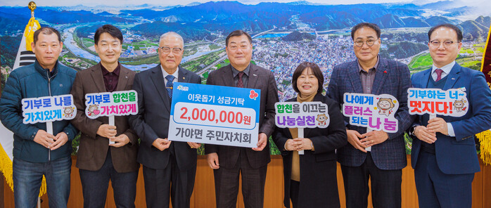 이번 기탁식에는 가야면 주민자치회 이정범 회장과 이형섭 부회장, 박미란 간사가 참석했다.