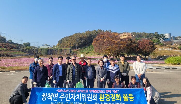 이번 환경정화 활동은 쌍책면 주민자치위원 15명이 참여한 가운데 가을철을 맞이해 도로변 및 공원에 버려진 생활쓰레기, 플라스틱 등을 수거했다. 특히 주민자치위원들은 최근 유네스코에 등재된 옥전 고분군을 관람하기 위해 찾는 내방객과 관련 행사로 방문하는 기관·사회단체장 등 깨끗하고 쾌적한 이미지를 제공하기 위해 구슬땀을 흘렸다.