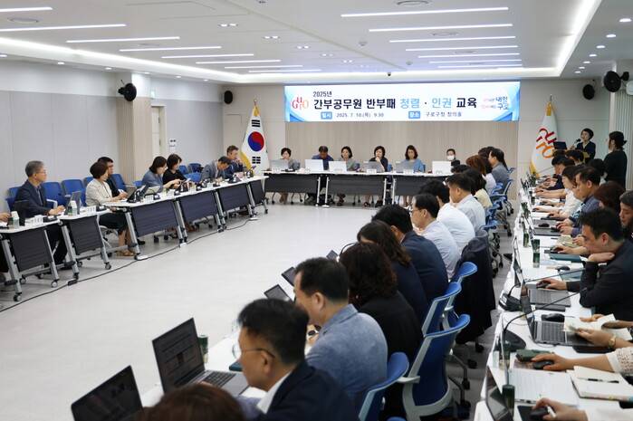 [시민일보 = 박소진 기자] 구로구(구청장 장인홍)가 지난 10일 구청 창의홀에서 5급 이상 간부 공무원들을 대상으로 반부패 청렴·인권 교육을 실시했다.