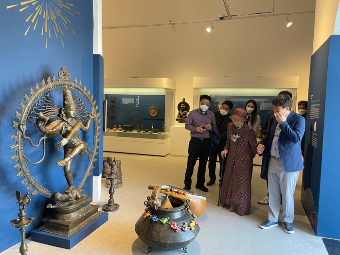 김 관장은 지난해 12월 일평생 수집한 인도의 귀중한 유물 1,192점을 김해시에 무상 기증했으며 이날 김해를 방문해 자신의 기증유물특별전이 열릴 가야테마크 전시장과 허왕후기념공원 사업부지인 불암동 일원을 둘러봤다.