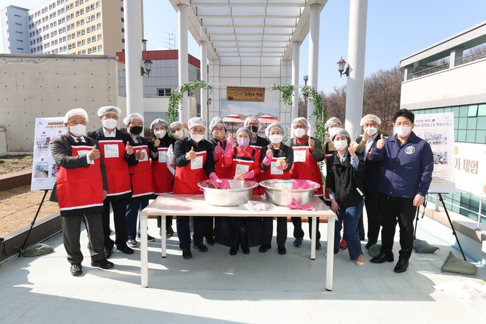 서울 은평구 진관동 주민자치회는 최근 5일 동안 진관동 주민 대상으로 ‘보리쌀효소 된장 담그기 체험’을 실시했다. 진관동 주민자치회 김동희 부회장의 재능기부를 통해 진행됐으며, 보리쌀효소 된장담그기 비법을 체험코자 하는 주민 66명과 함께 총 600kg의 된장을 담갔다. 사진은 체험 참가자들이 기념촬영을 하는 모습. (사진제공=은평구청)